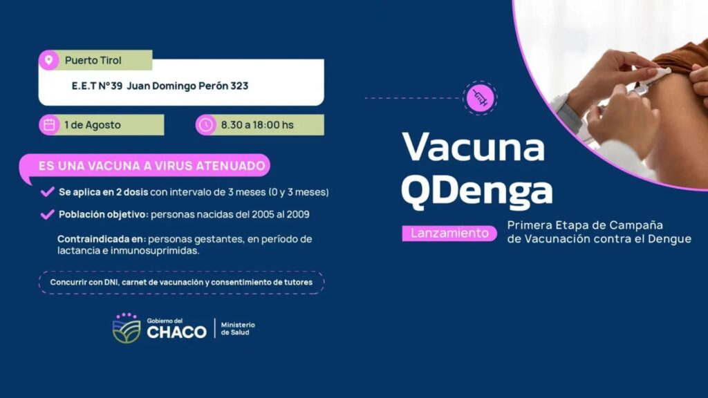 El Gobierno del Chaco, a través del Ministerio de Salud y el Departamento de Inmunizaciones, comenzará la campaña de vacunación contra el dengue. En esta primera etapa, la vacunación estará dirigida a las personas nacidas entre 2005 y 2009.