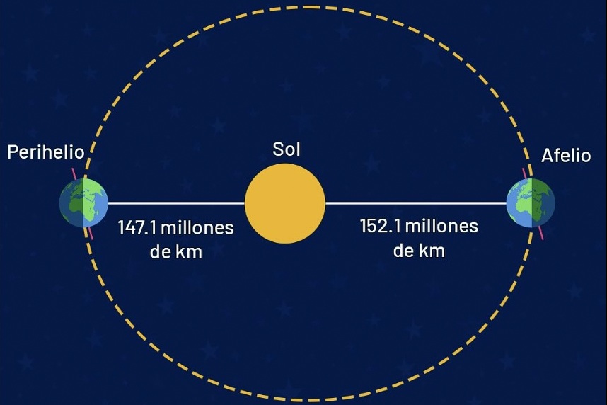 De acuerdo con la segunda ley de Kepler, la velocidad de traslación de la Tierra es mínima en el afelio y máxima en el perihelio, puntos de la órbita conocidos como puntos apsidales. El perihelio, o el punto de máximo acercamiento, ocurrió el pasado 2 de enero.